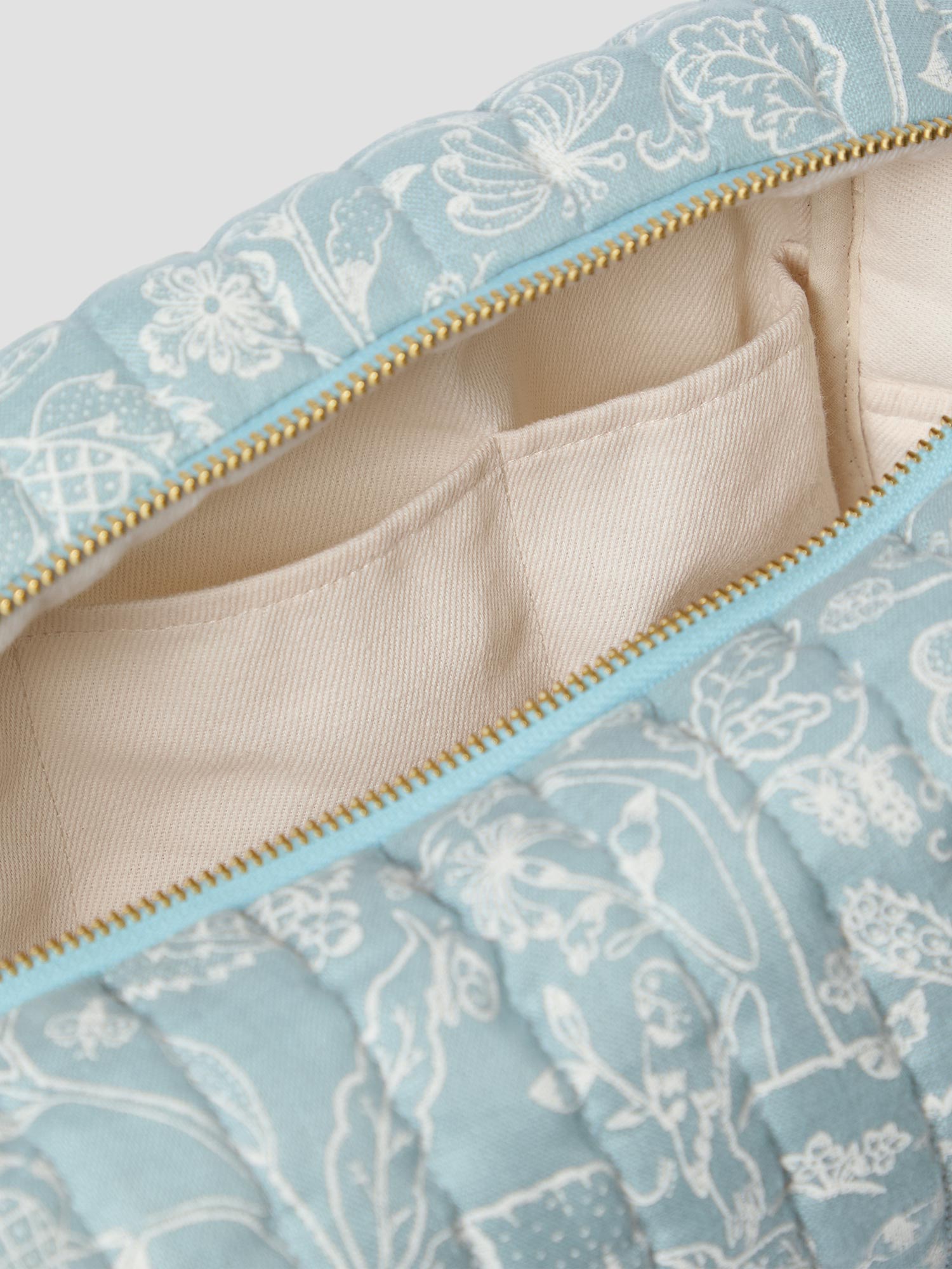 Keep your essentials neatly organised at home or on the go with our linen wash bag, thoughtfully crafted from offcuts of our 100% linen River Wandle Middlemore fabric from Morris & Co. Perfect for travel or tidying up your bathroom shelf, these wash bags have a quilted design, secure zipper closure and a coated cotton lining for easy cleaning.