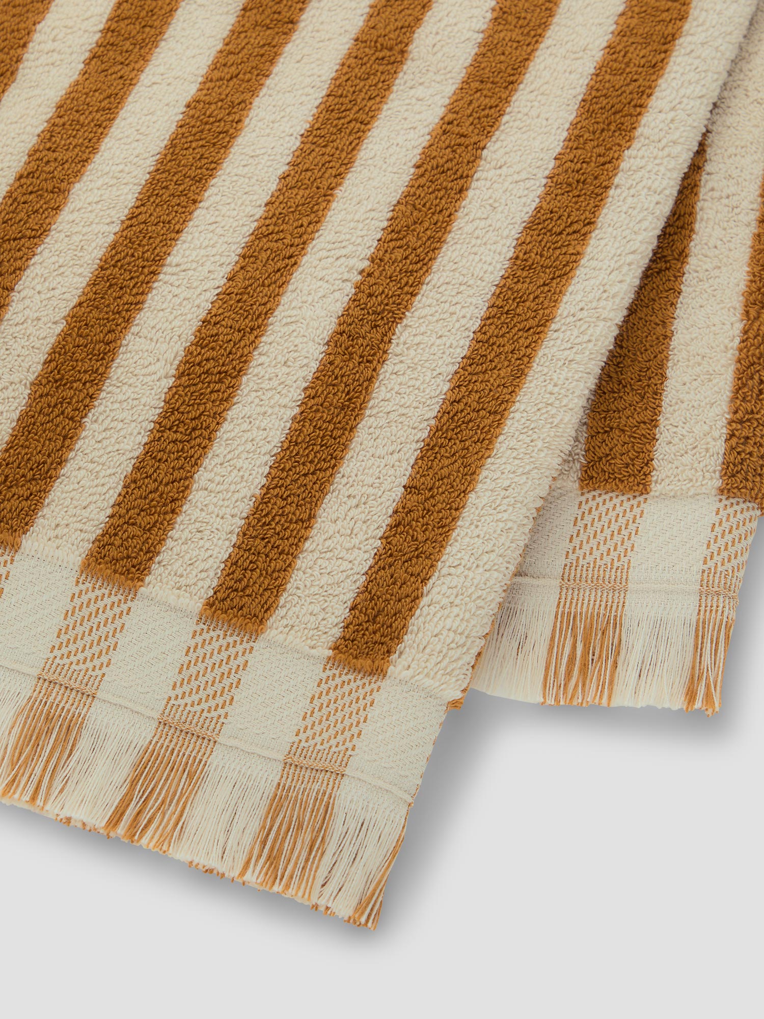 Envelope yourself in plush, natural comfort with our Russet Yellow Pembroke Stripe cotton towels. Made from zero-twist cotton, they’re super soft with a smooth feel, and are finished with a delicate fringe edging. These towels are available in three sizes: bath sheets (100 x 150cm), bath towels (70 x 130cm) and hand towels (50 x 90cm).