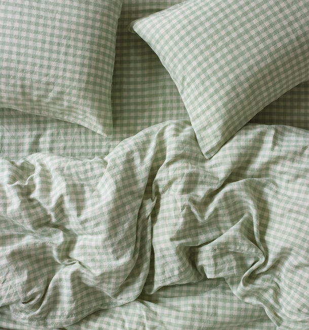 Timeless yet on-trend, our playful Sage Green Gingham linen blend duvet set is the ultimate choice for modern cottagecore style. Made from only the highest-quality fibres, the breathable fabric combines the effortless look of linen with the softness of cotton. Our duvet set includes one duvet cover and one pair of pillowcases (standard size for single, double and king sets; super king size for super king set).