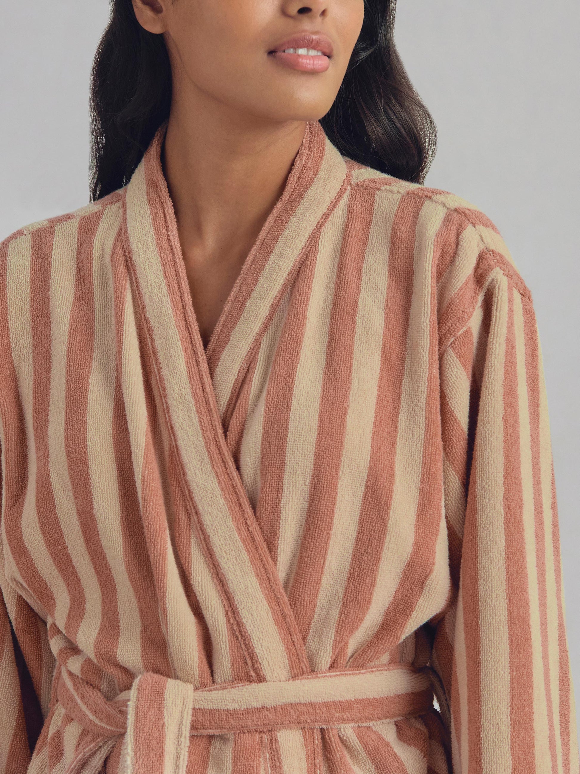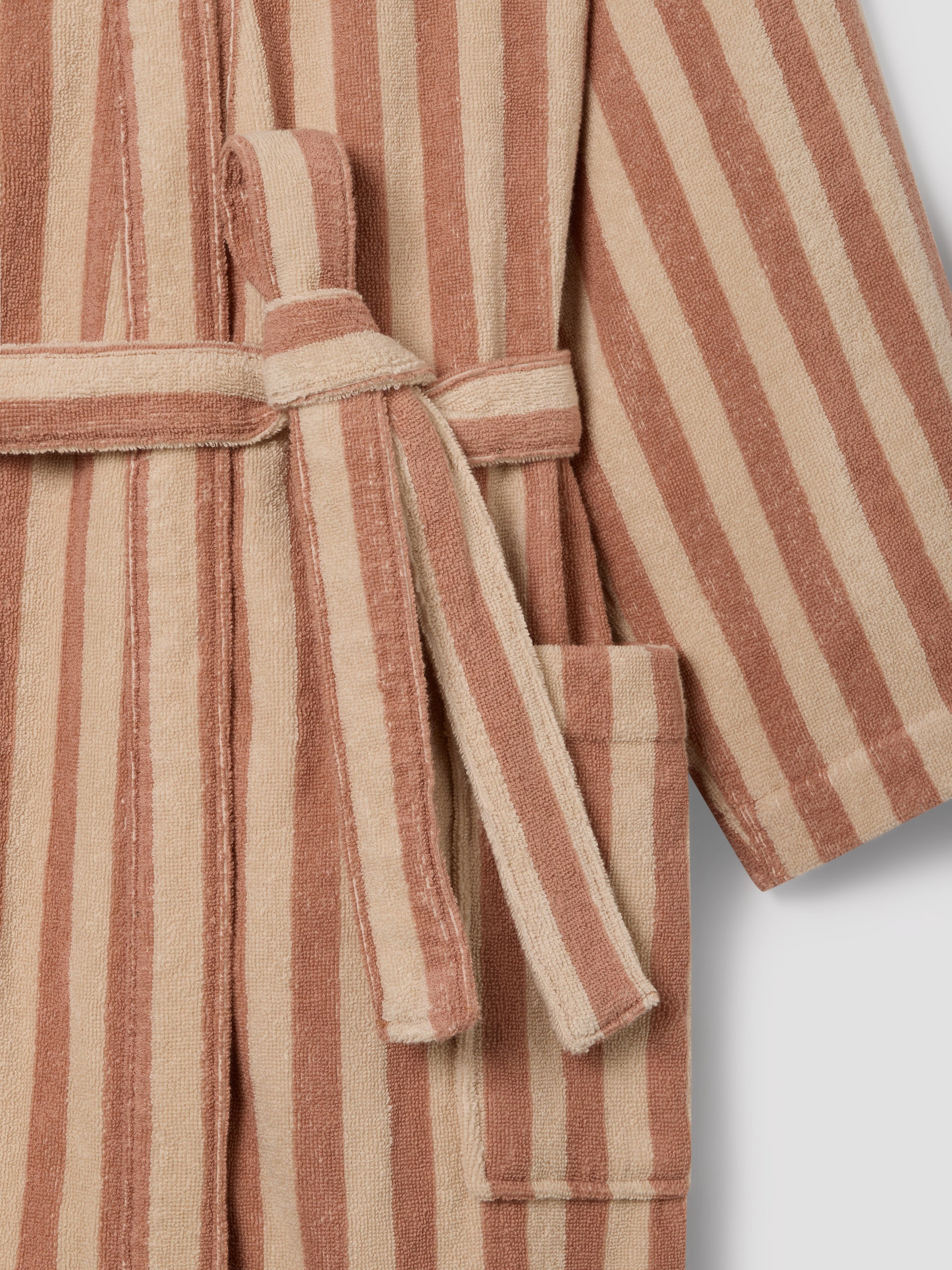 Envelope yourself in plush, natural comfort with our Sand Shell Pembroke Stripe Cotton Robe. Made from sustainably sourced zero-twist cotton, this striped towel is super soft and smooth – just like our best-selling towels. Our striped robes feature handy side pockets, an adjustable waist tie and kimono-inspired sleeves.