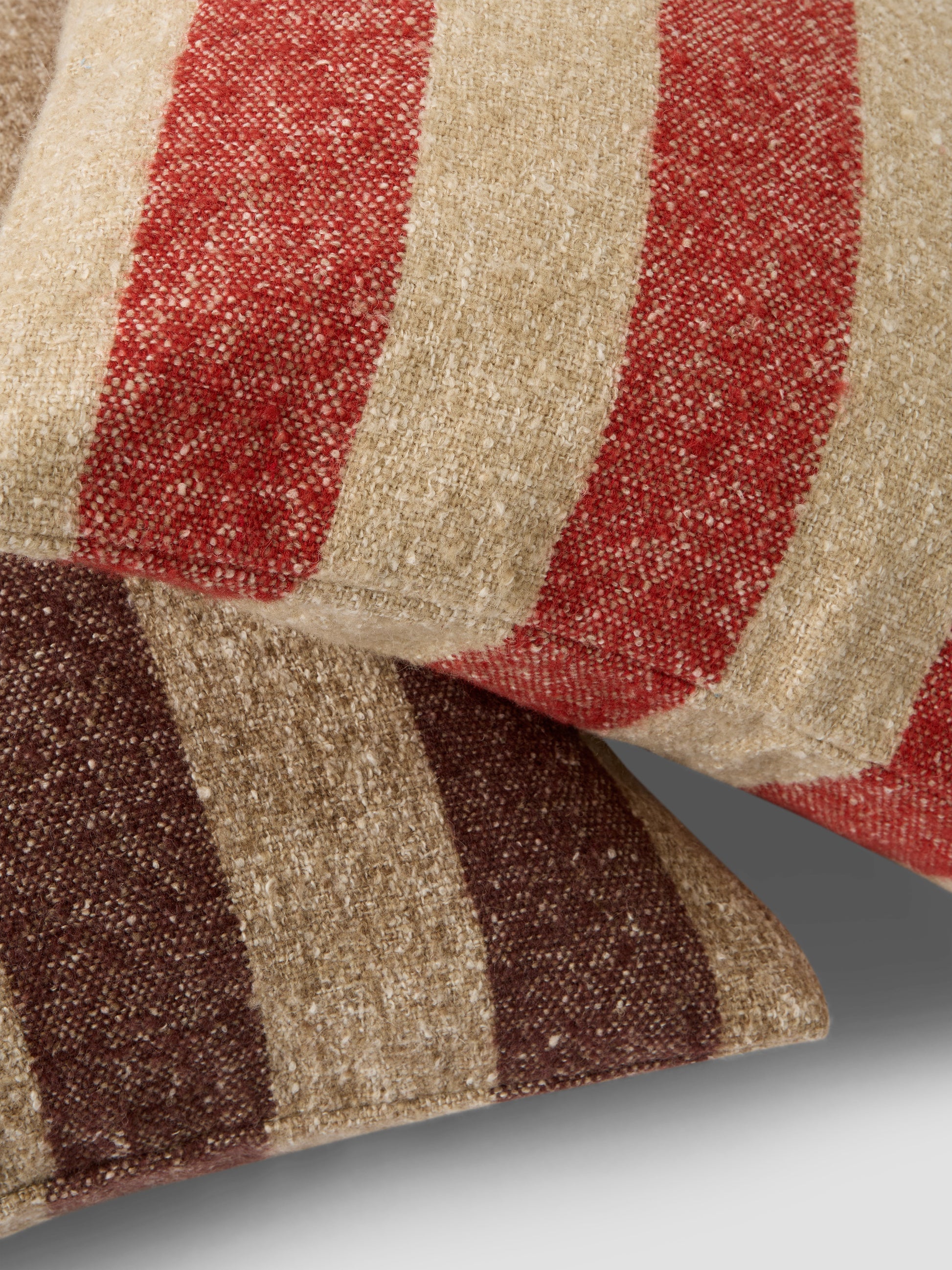 Sandstone Red & Oatmeal Wide Stripe Wool Square Cushion Cover