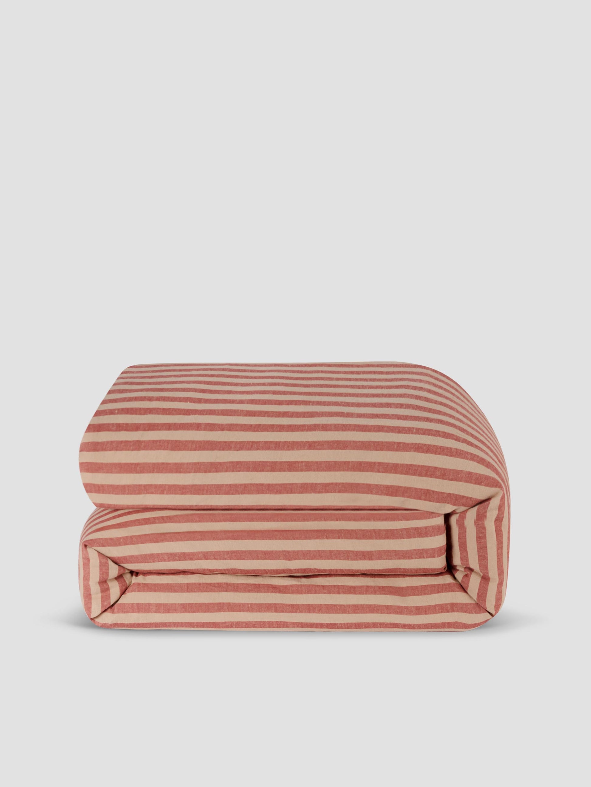 Sandstone Red Pembroke Stripe 100% Linen Duvet Cover