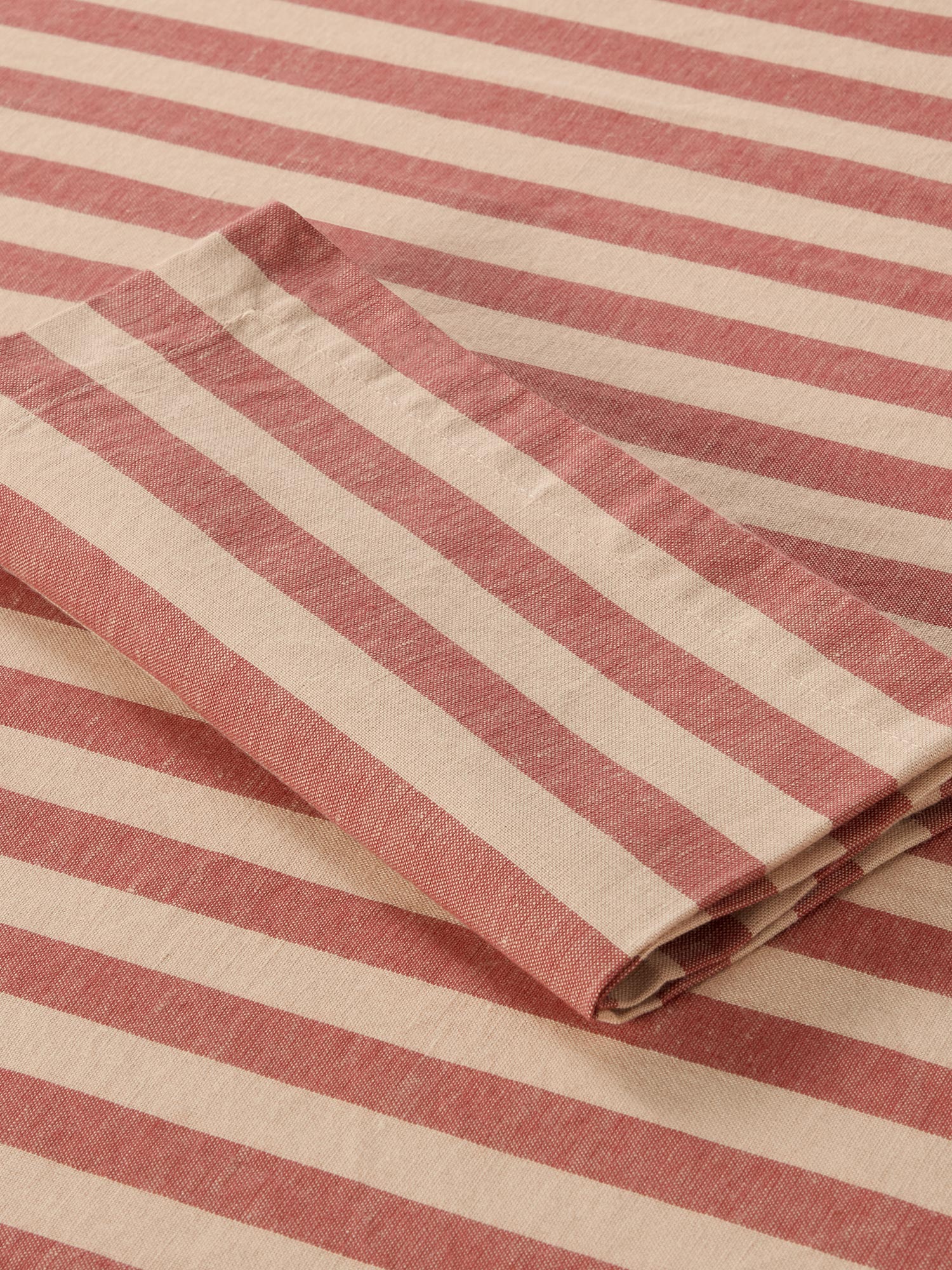 Whether for a weeknight supper or a feast with friends, our bold Sandstone Red Pembroke Stripe linen blend napkins bring a generous helping of joy to the dinner table. Woven from European flax and long staple cotton, our table linens have a relaxed look and feel with a super-soft finish. Complete your dining table look with the rest of our linen tableware range, including tablecloths and table runners.