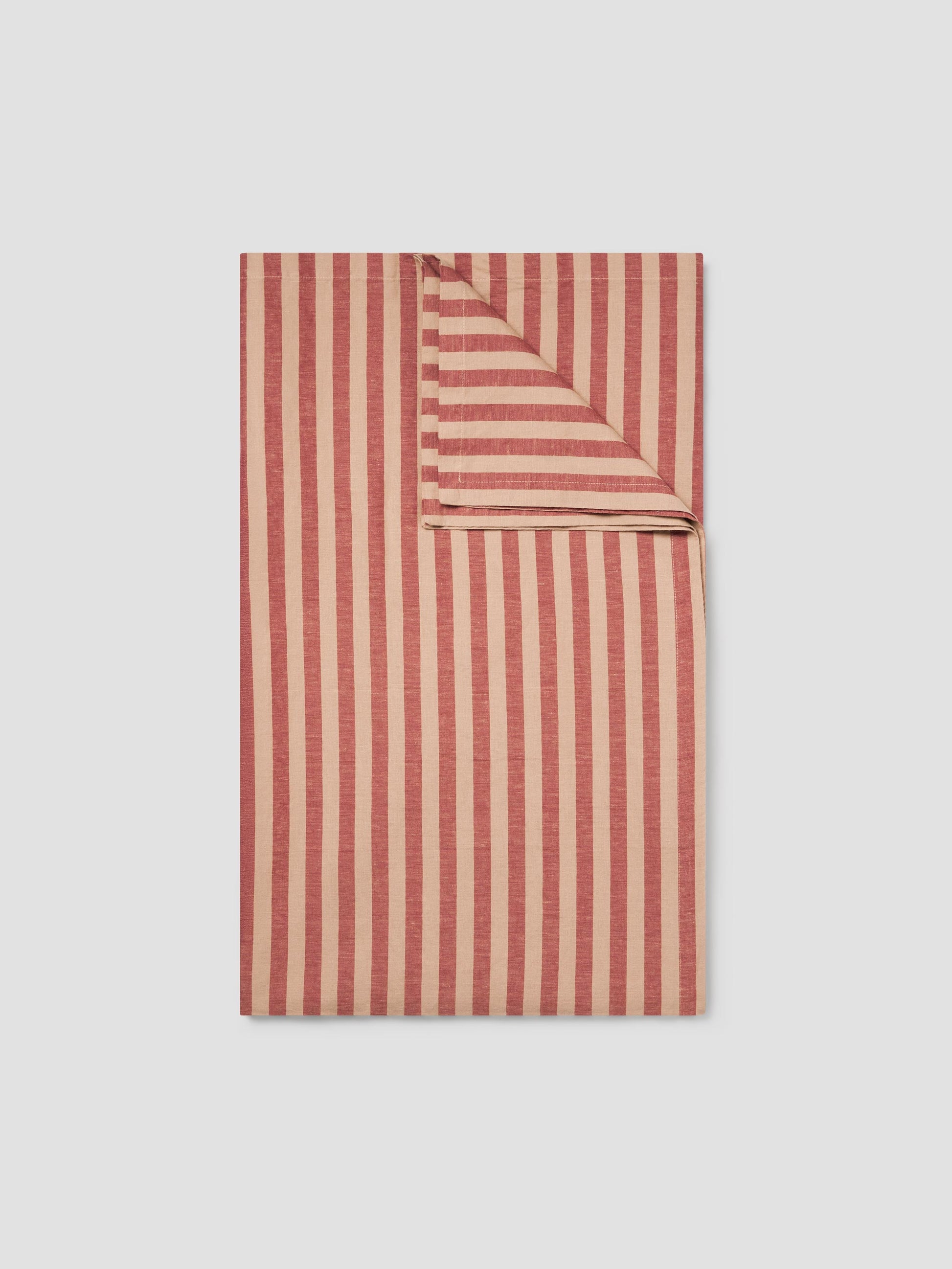 Sandstone Red Pembroke Stripe Linen Blend Tablecloth