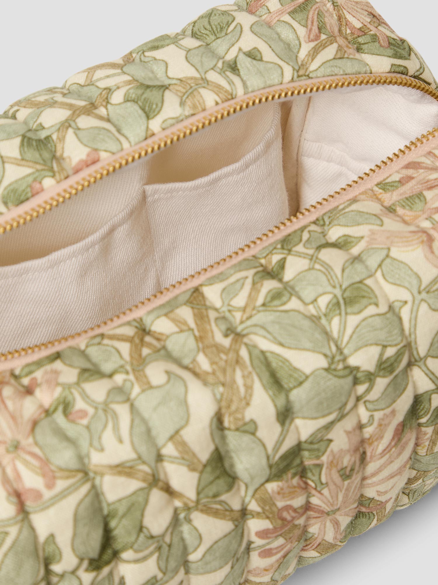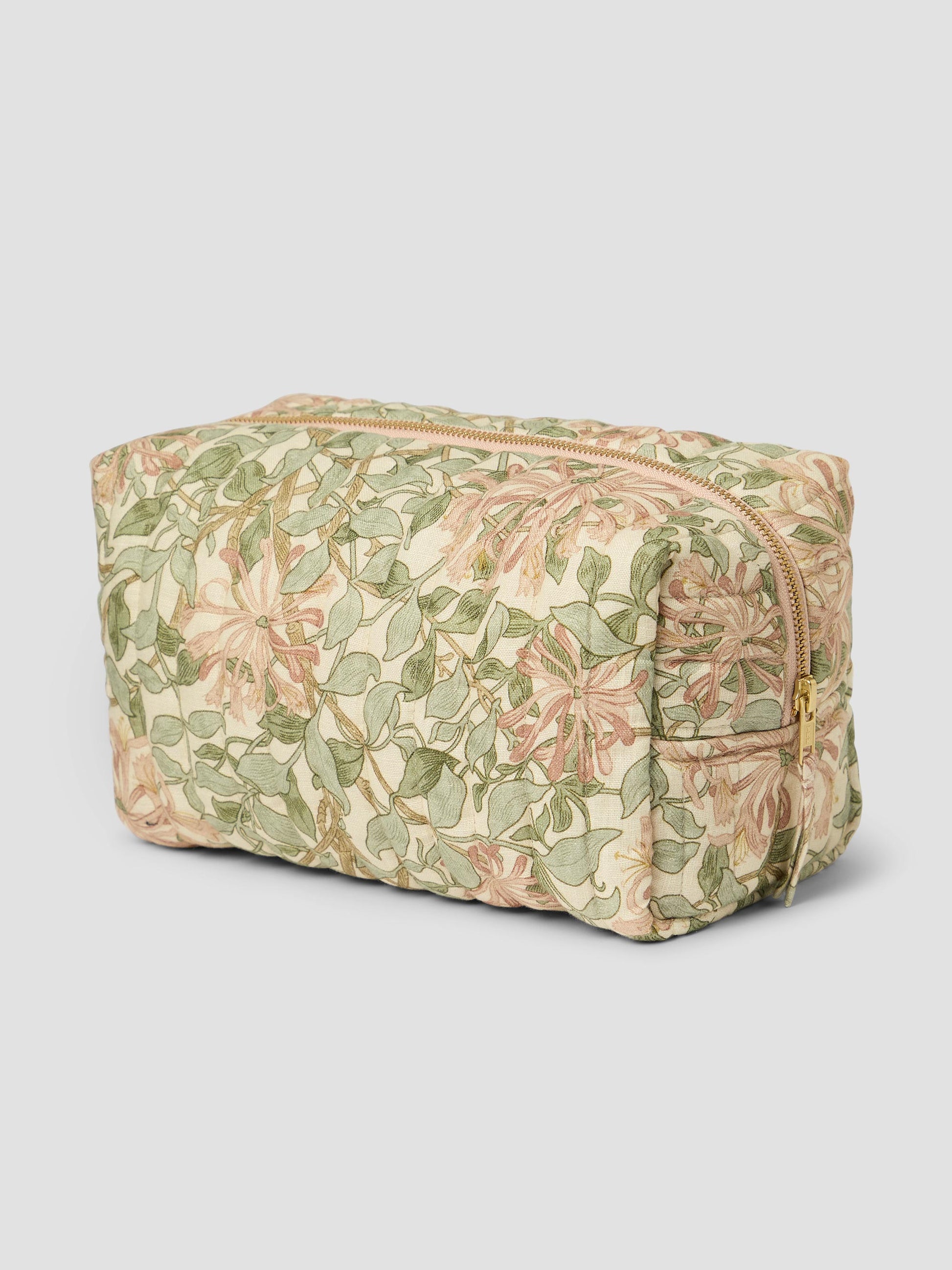 Keep your essentials neatly organised at home or on the go with our linen wash bag, thoughtfully crafted from offcuts of our 100% linen Soft Sage Honeysuckle fabric from Morris & Co. Perfect for travel or tidying up your bathroom shelf, these wash bags have a quilted design, secure zipper closure and a coated cotton lining for easy cleaning.