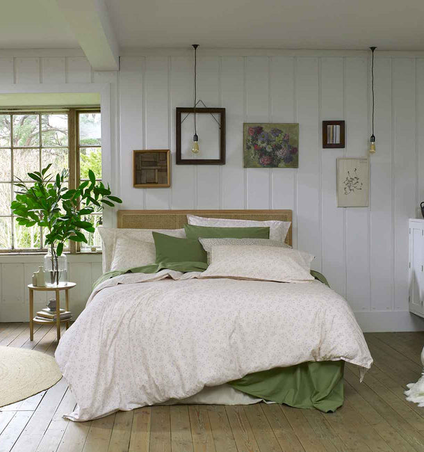 Add a touch of English countryside charm to your bedroom with our Spring Sprig cotton valance. Featuring a printed floral motif, this classic gathered skirt drapes beautifully with its soft frills. Our bed valances have a 38cm drop from the base to the floor and come in four sizes for single, double, king and super king beds.