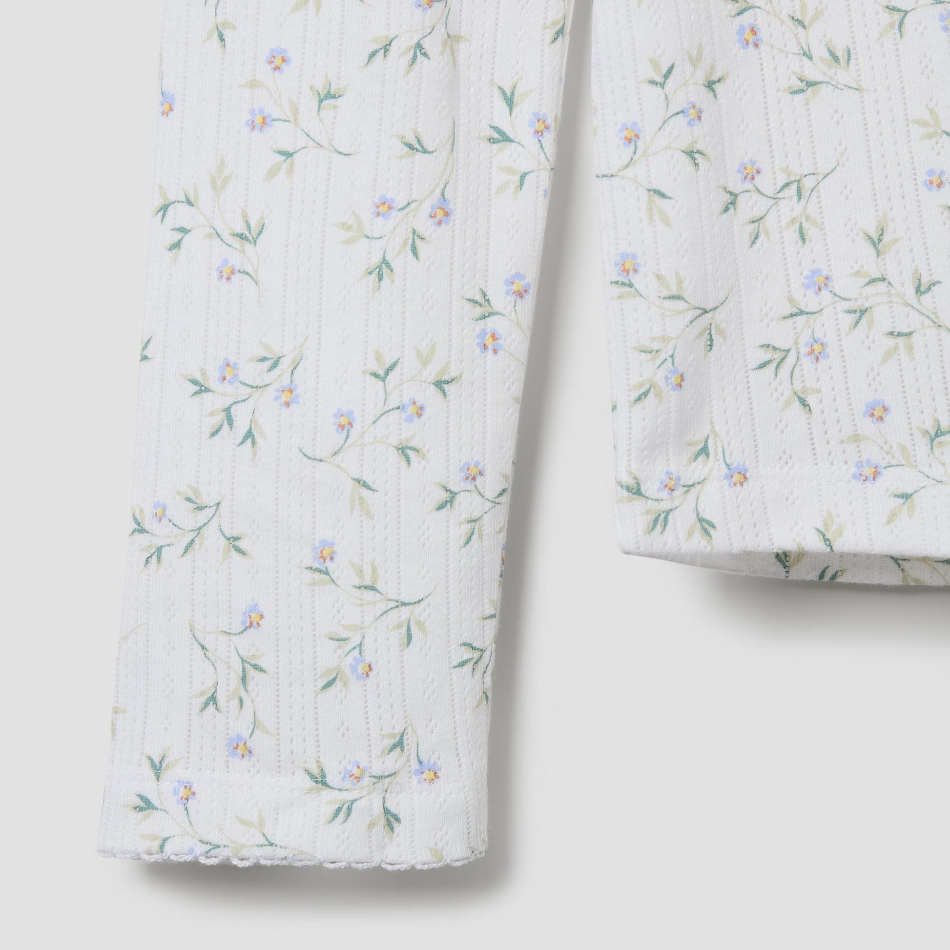 A simple, easy-to-wear layer, this long sleeve pyjama top is cut from soft organic cotton in our pointelle Spring Sprig fabric. Finished with picot trim details, it pairs perfectly with any of the coordinating separates.