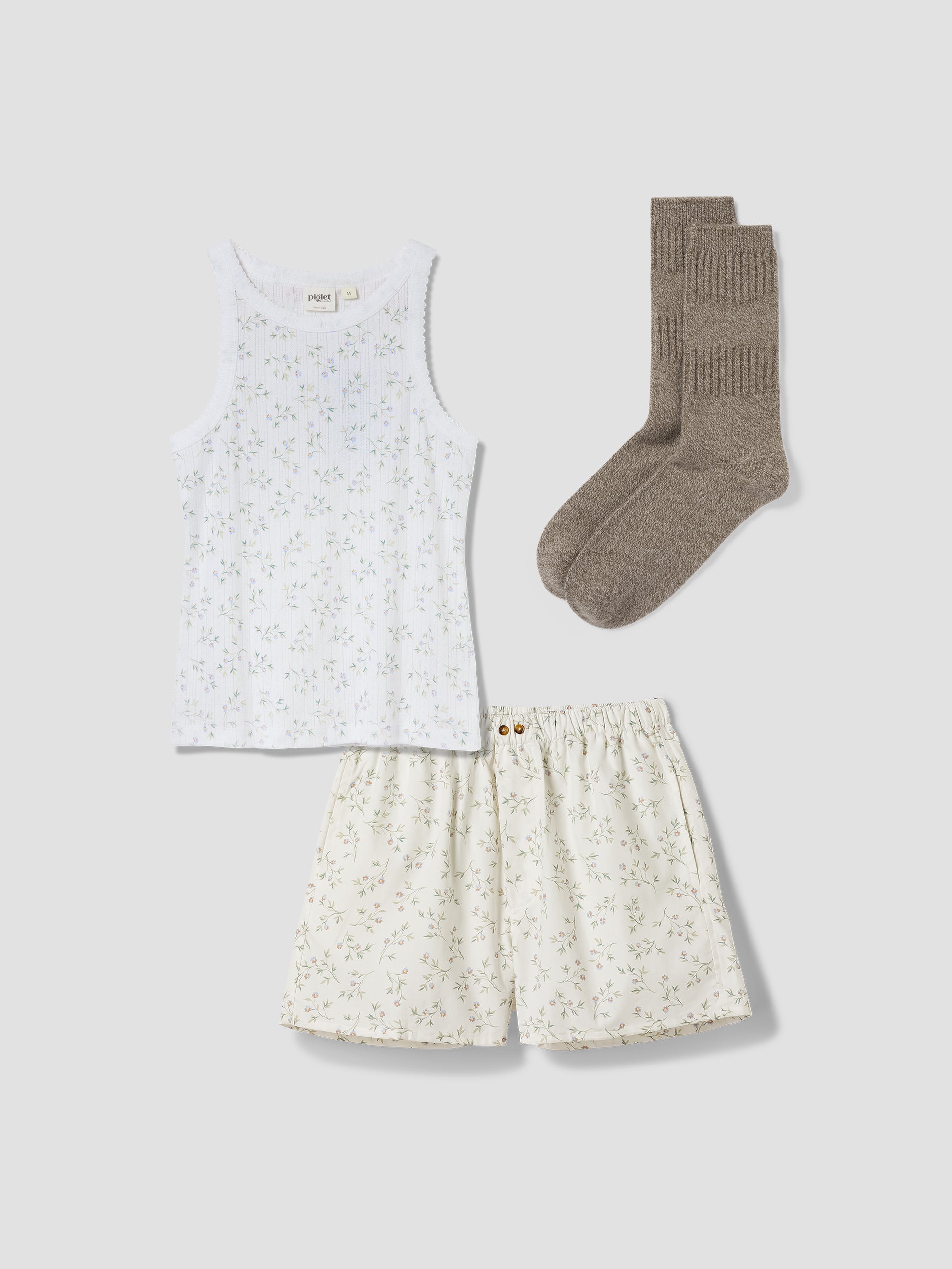 The ultimate lazy-day ensemble: relaxed cotton boxer shorts, a super-soft pointelle vest, and cosy rib-knit socks – the perfect gift set for anyone who loves to lounge. Add a free personalised gift note at checkout, and we’ll print your message on one of our signature Piglet postcards.