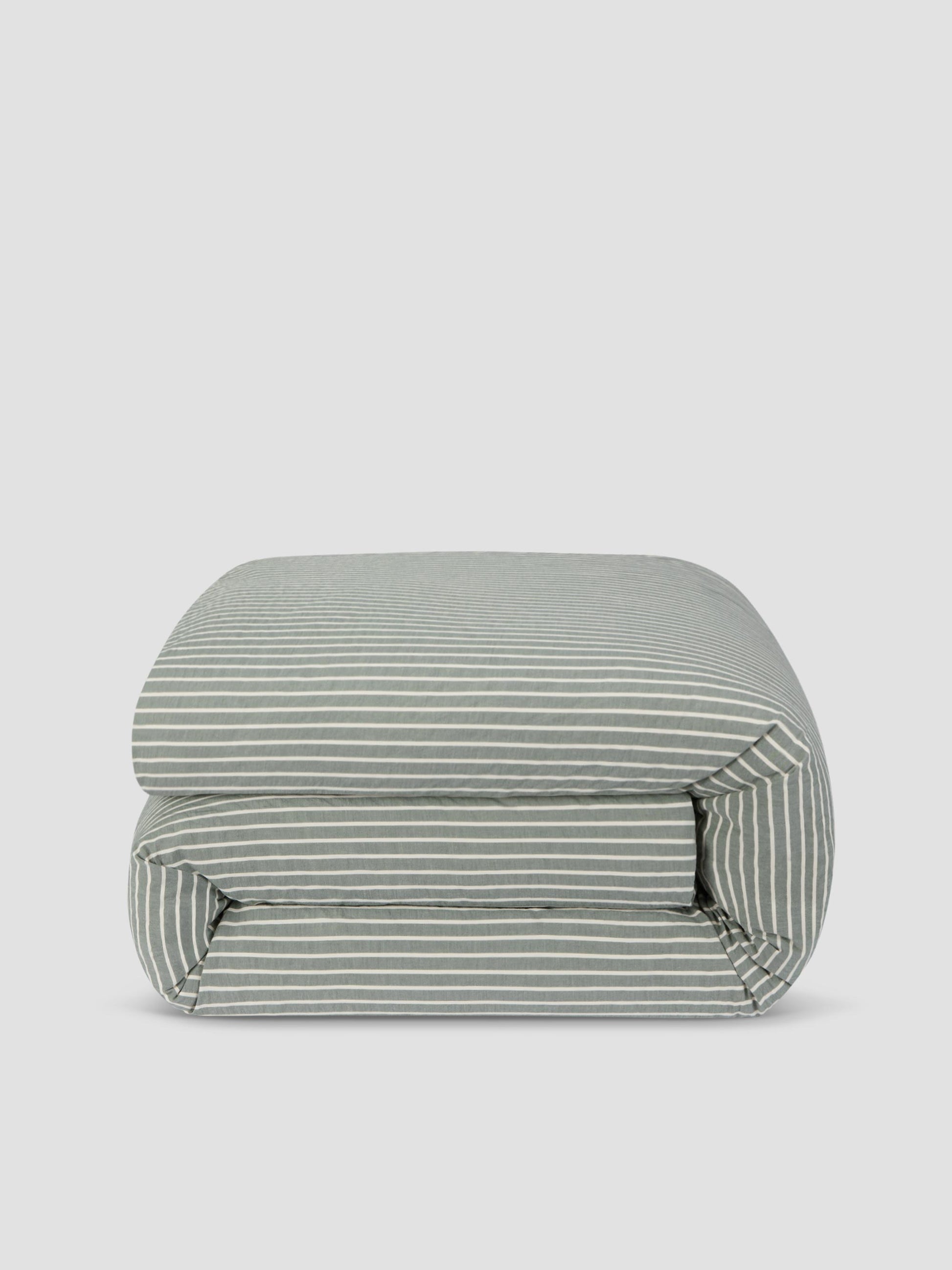 Spruce Green Textured Stripe Cotton Duvet Cover