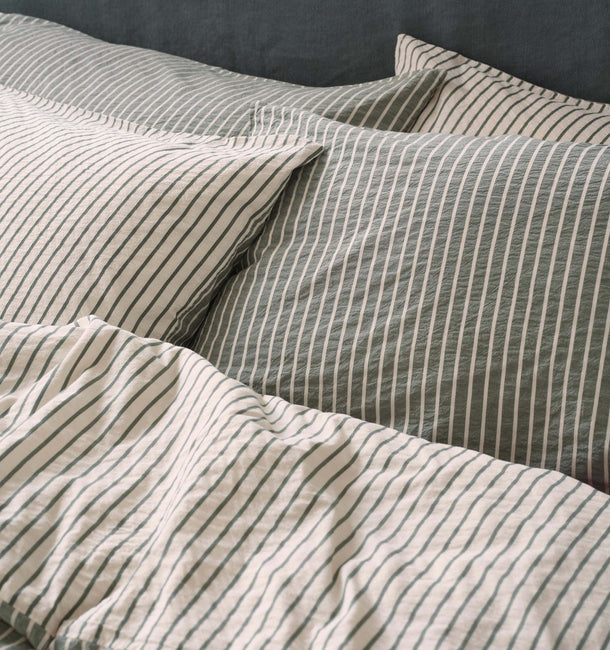 Classic stripes with a clever two-in-one design make mix-and-match styling as easy as can be with these Spruce Green Textured Stripe pillowcases. Woven from 100% cotton with a textured finish, this bedding is wonderfully soft and breathable with a relaxed, lived-in feel. All our pillowcases have envelope closures, making sure your pillow stays out of sight.