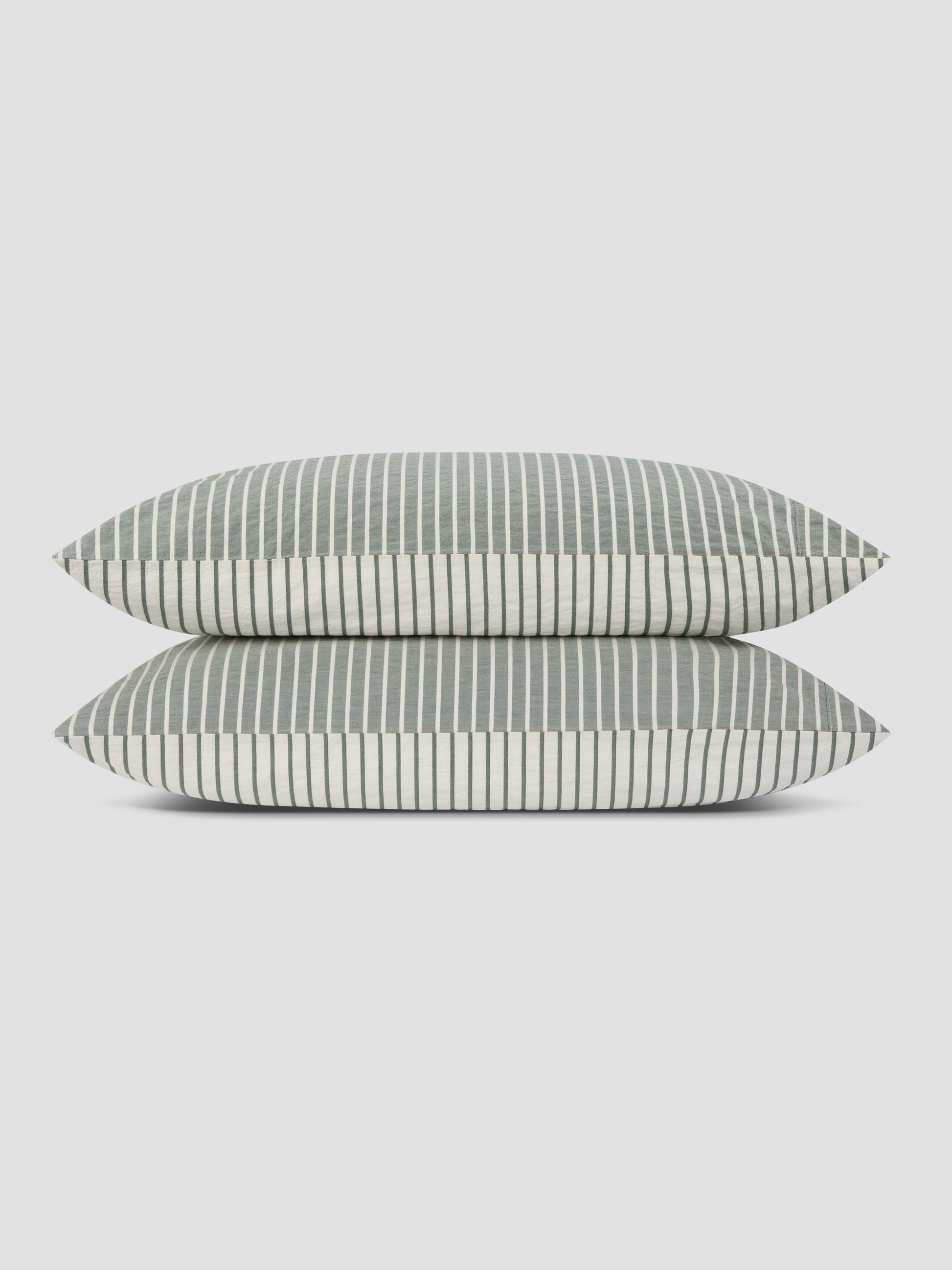 Spruce Green Textured Stripe Cotton Pillowcases (Pair)