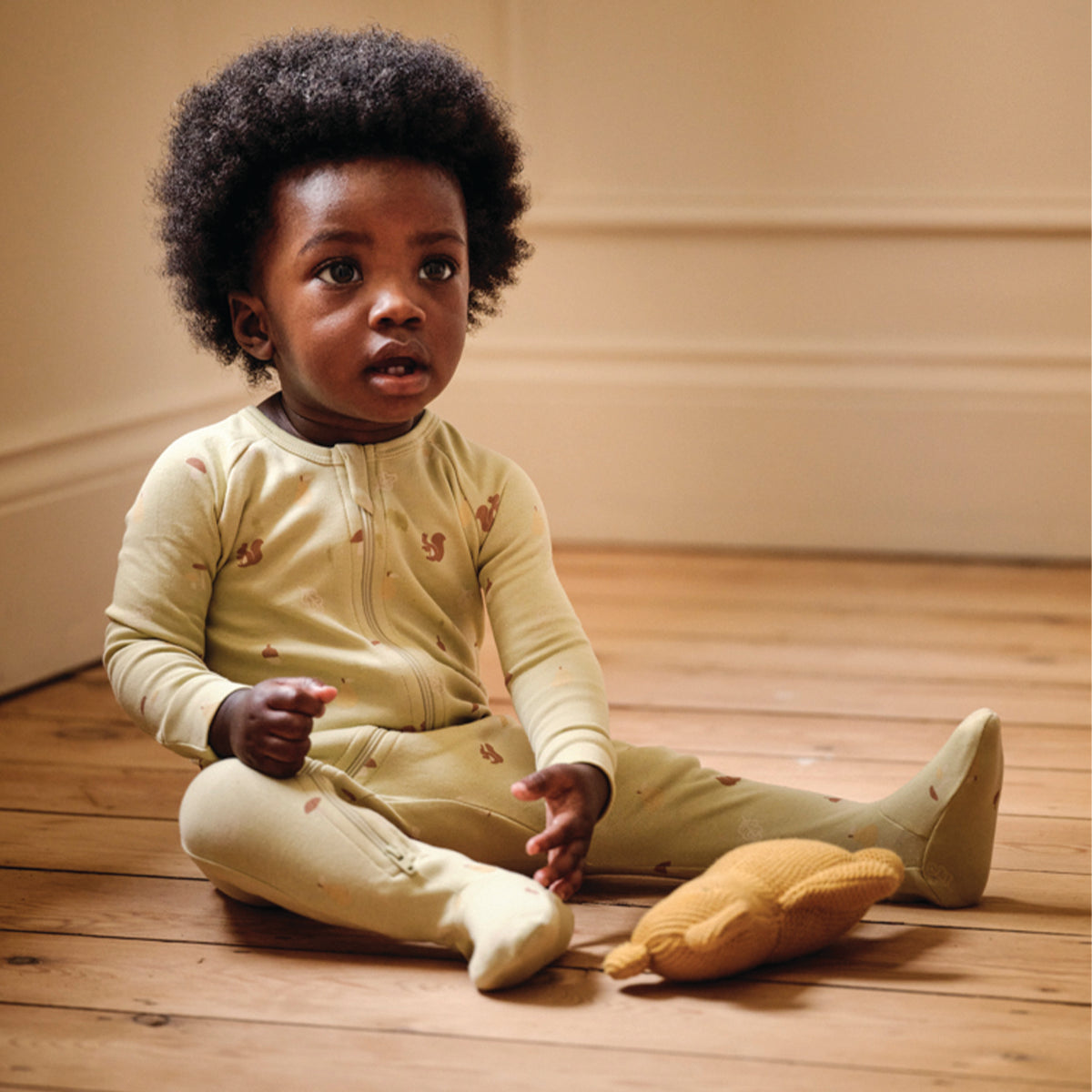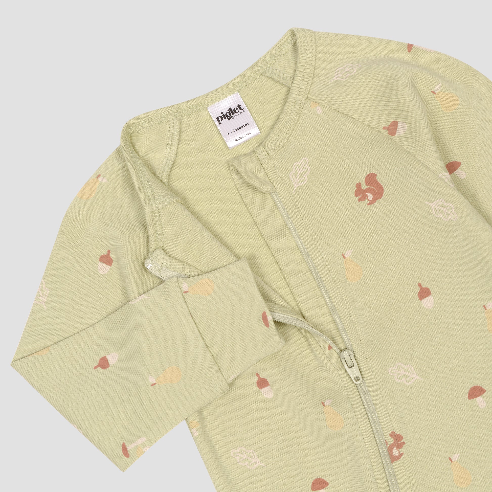 With an all over whimsical woodland print, our Sweat Pea long sleeve sleepsuit is perfect for little adventurers. Woven from 100% cotton, this super soft and breathable onesie is gentle on even the most sensitive skin. Our baby sleep suits have integrated feet and feature a zip up fastening, making changing time that little bit easier.