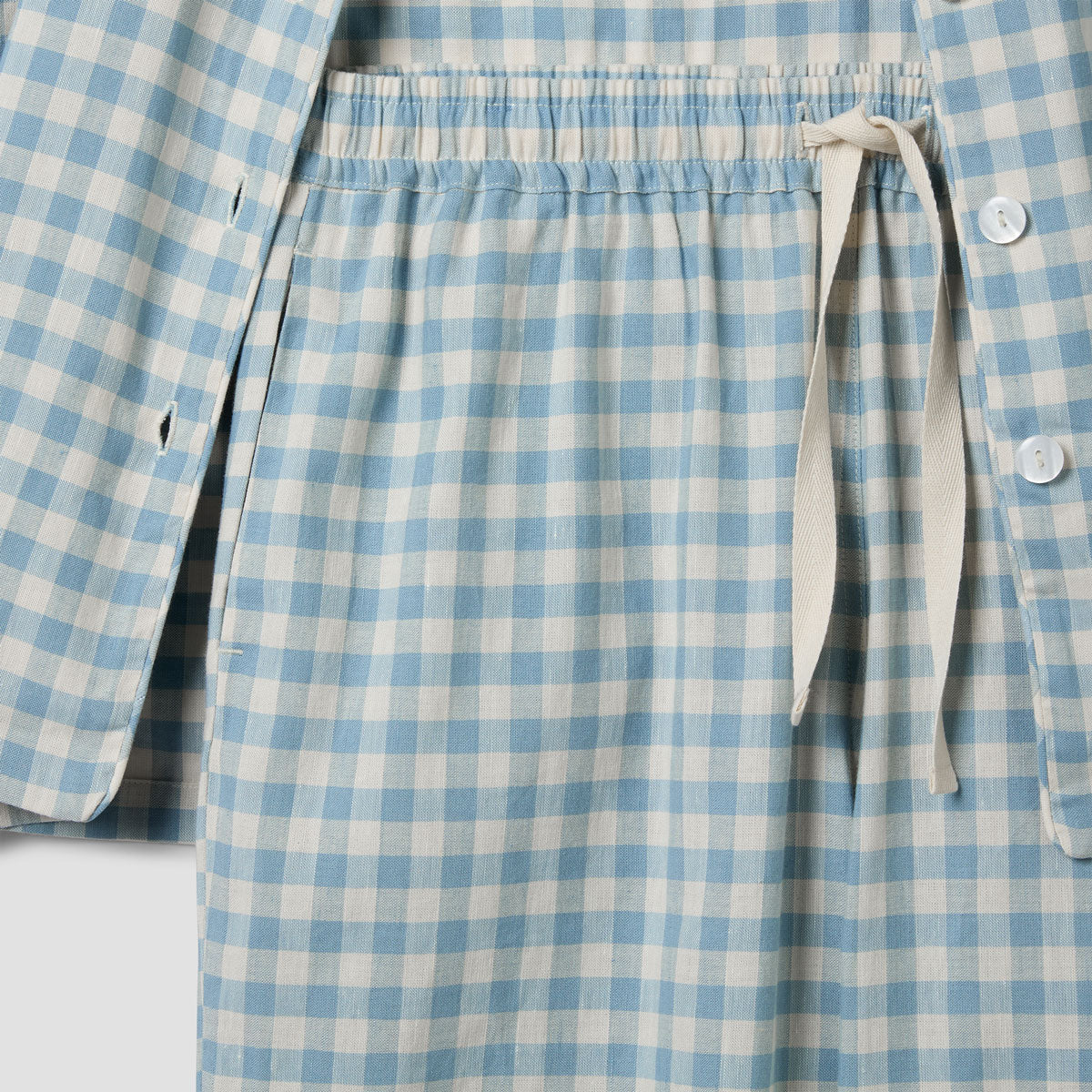 Warm Blue Gingham Linen Blend Pyjama Trouser Set
