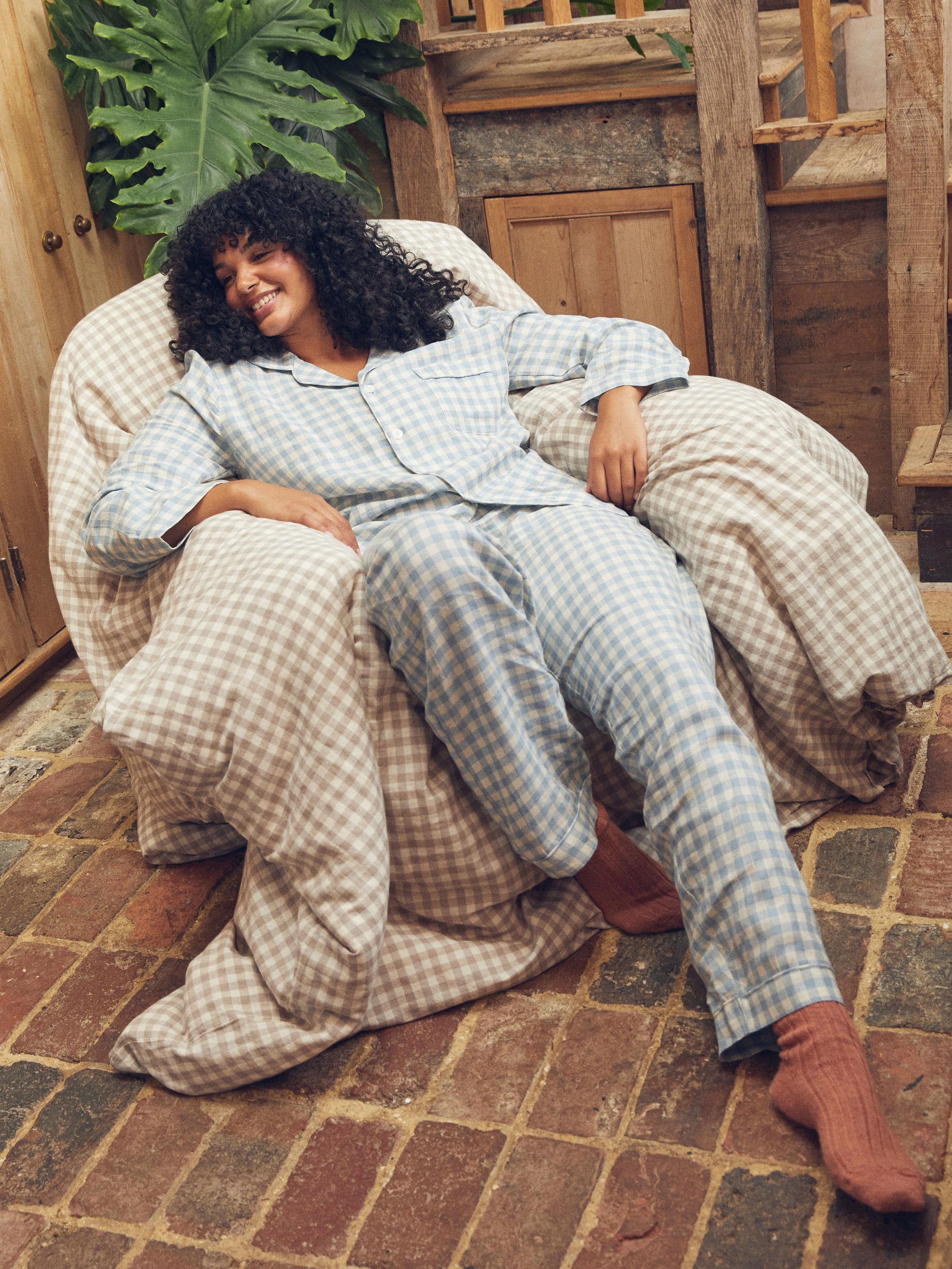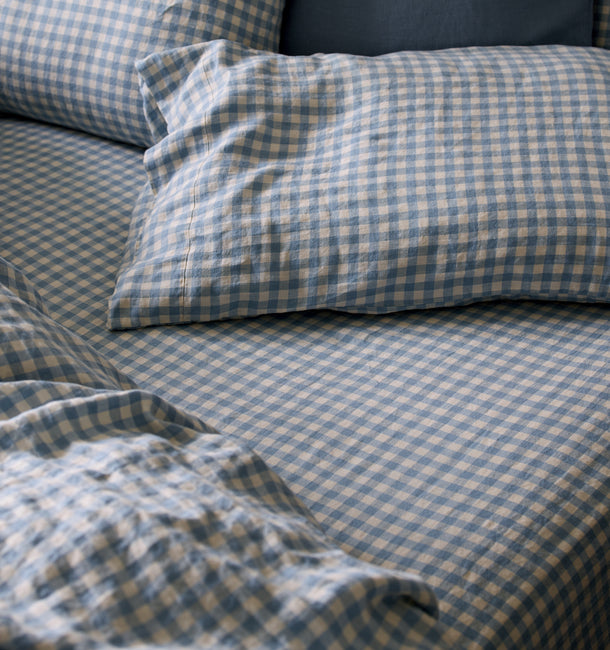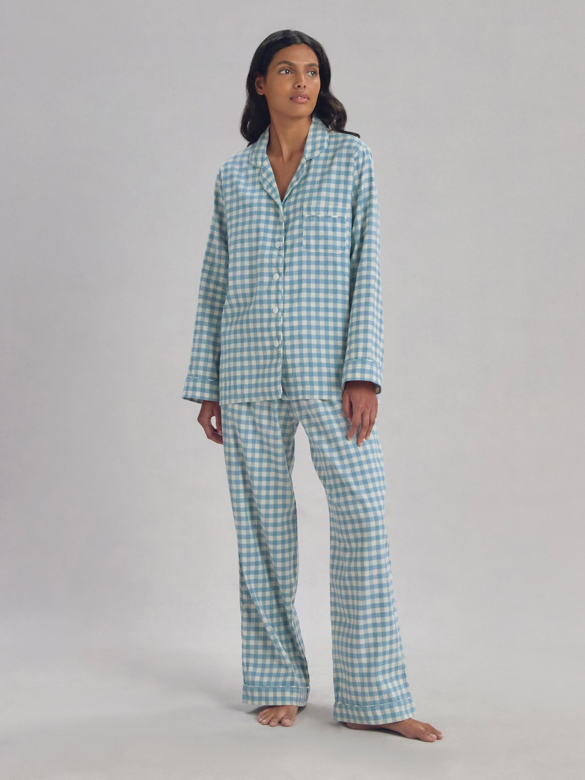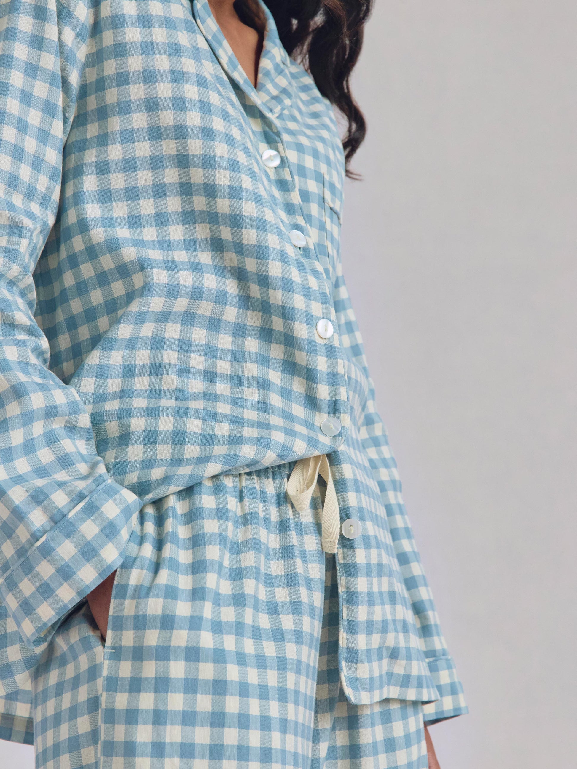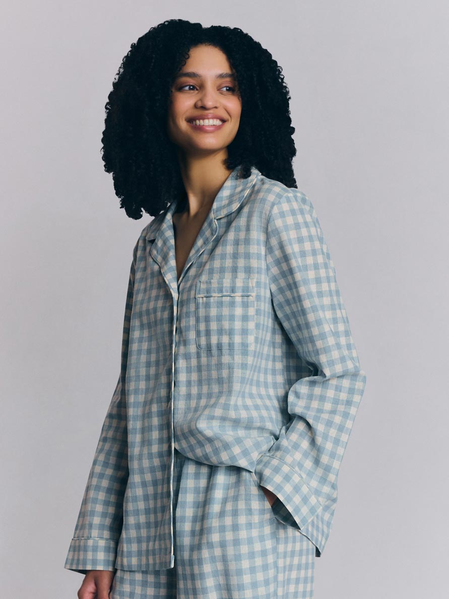 Made for easy, breathable wear, our Warm Blue Gingham linen blend pyjama trouser set will have you waking up feeling refreshed and ready to seize the day. Combining the laid-back look of linen with the gentle softness of cotton in our beloved gingham pattern, these pyjamas are destined to become your new nighttime favourite.
