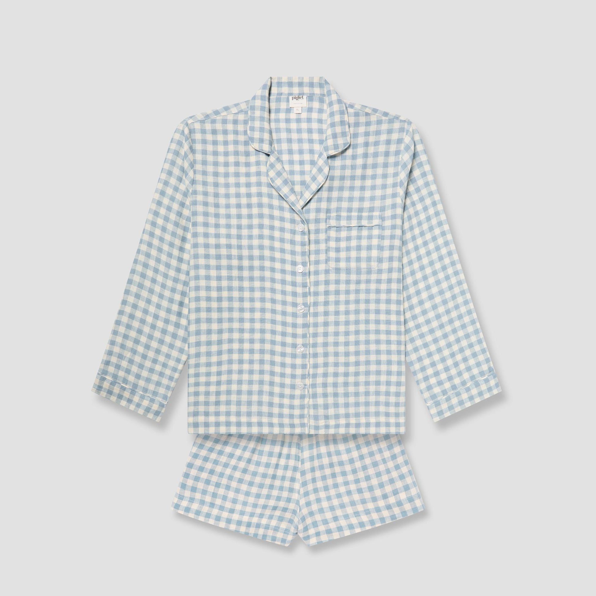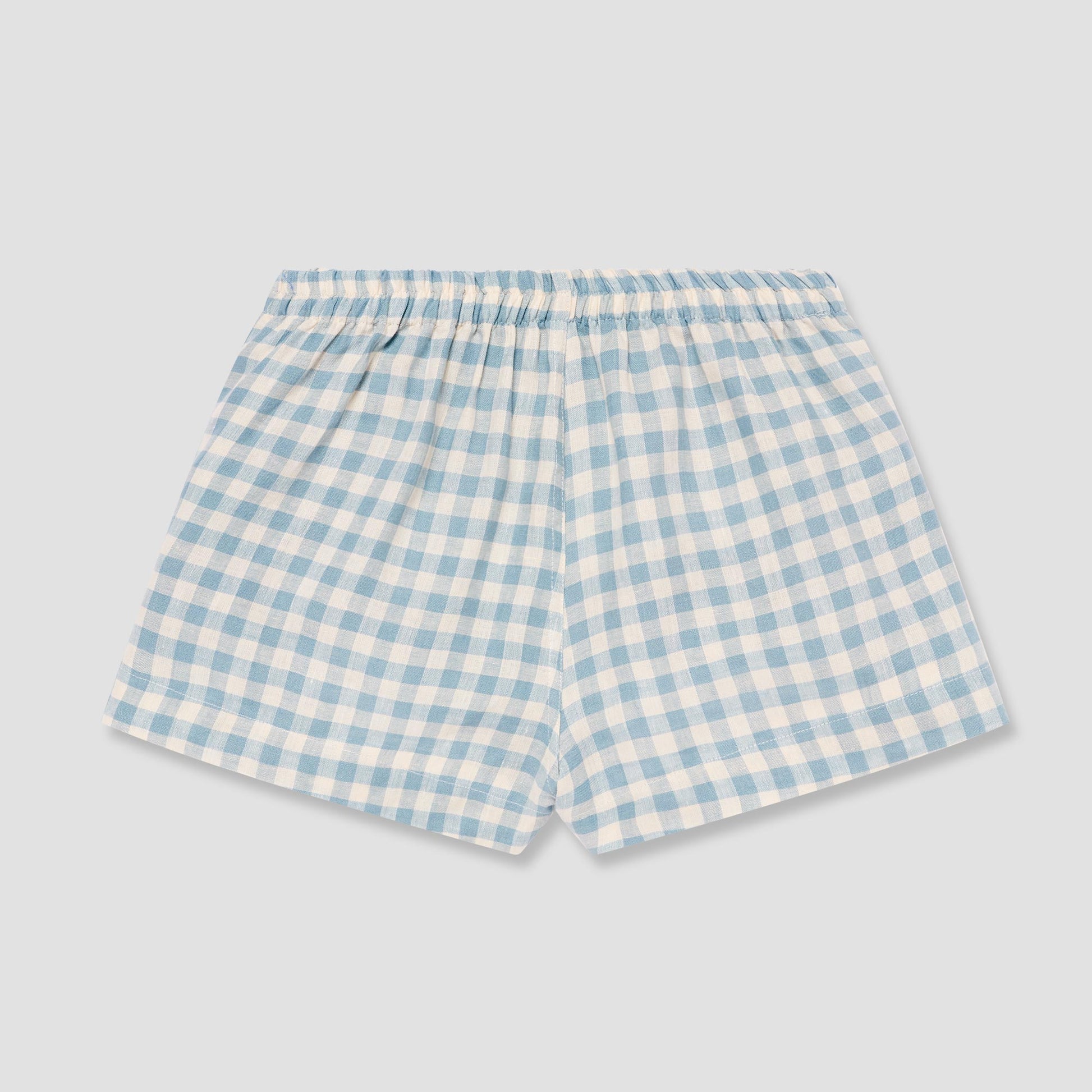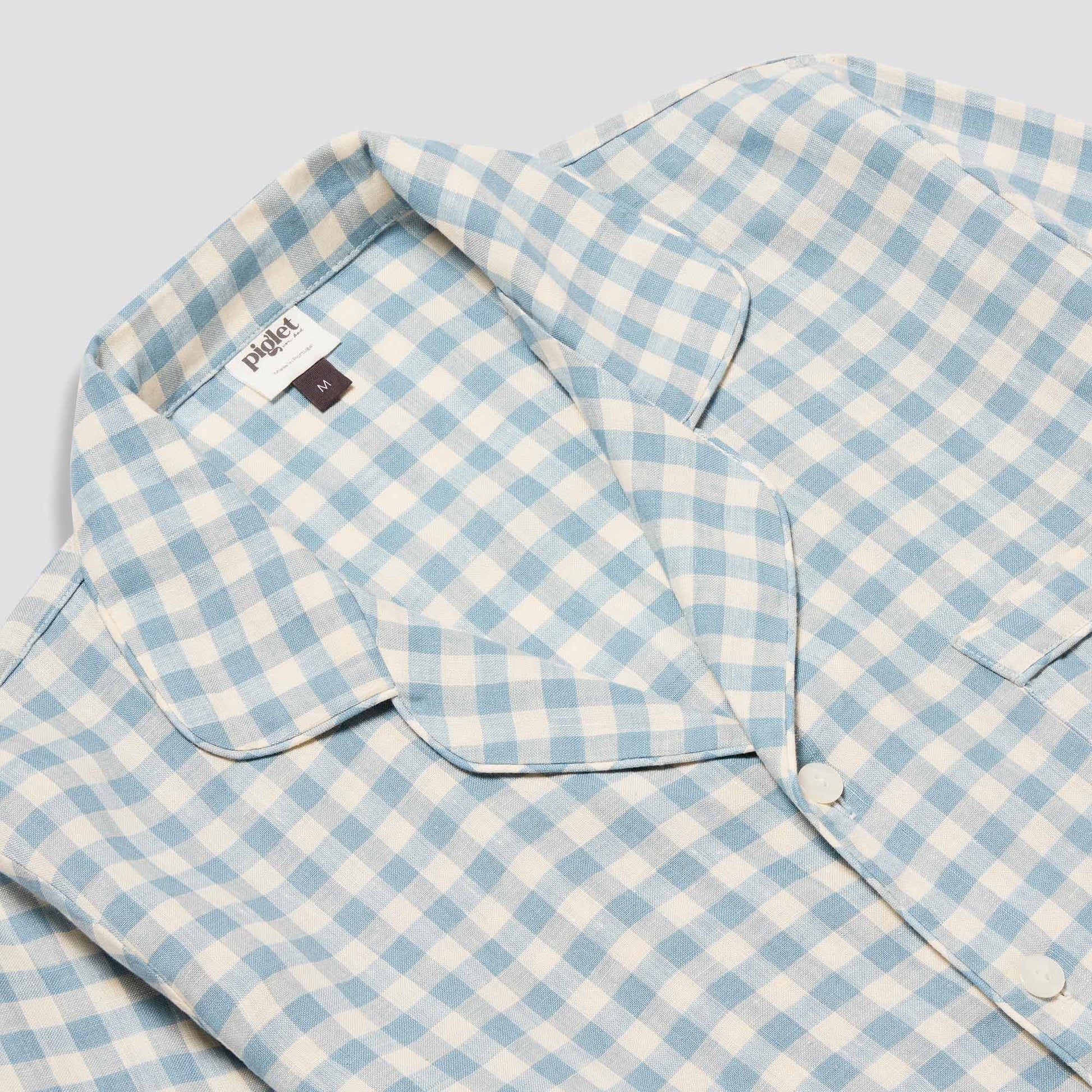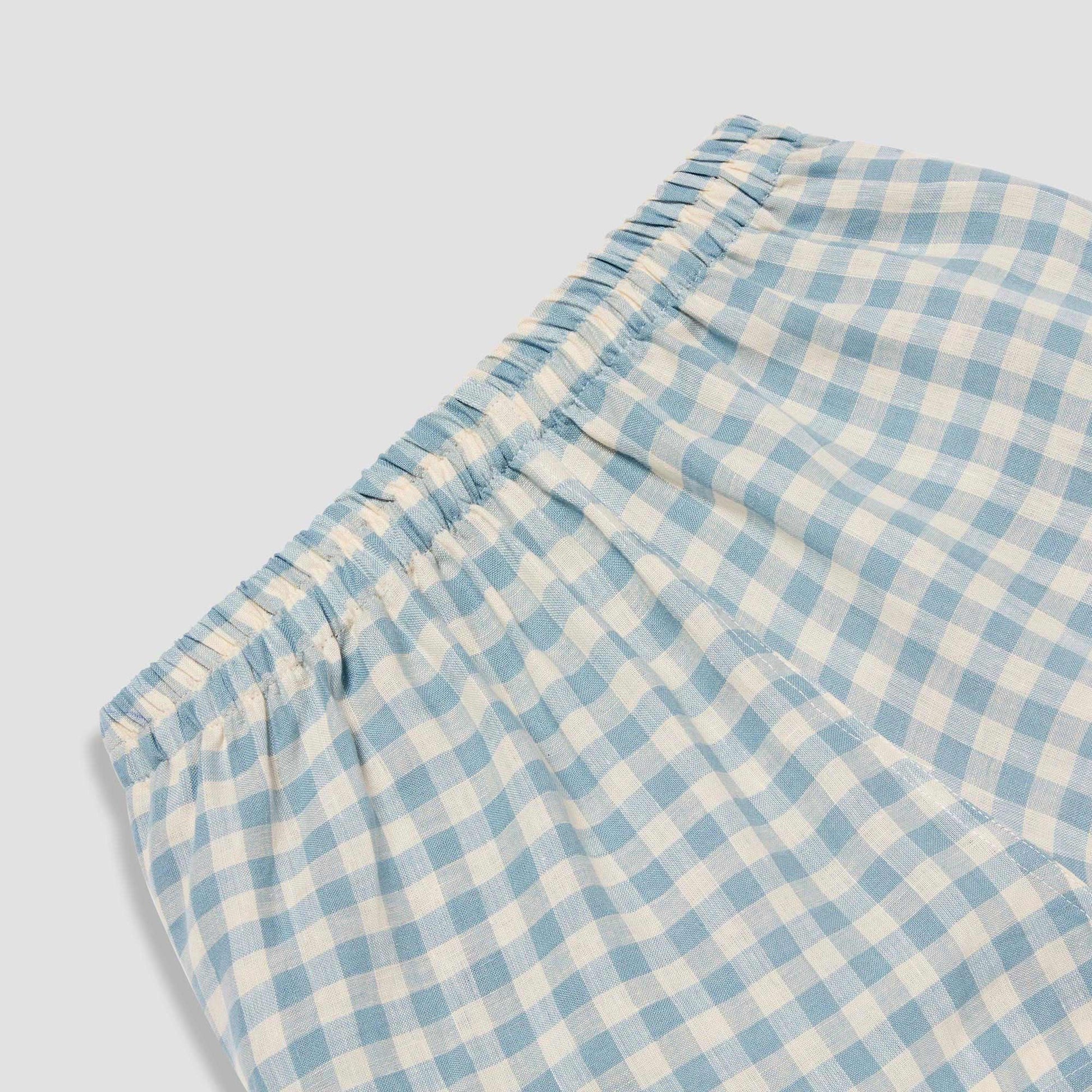 Warm Blue Gingham Linen Pyjama Shorts Set