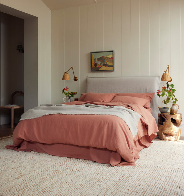 A rustic, dusky terracotta, our Warm Clay linen blend flat sheet is perfect for creating a relaxing retreat. Made from only the highest-quality fibres, the breathable fabric combines the effortless look of linen with the softness of cotton. Layer in the colder months or use as a lightweight cover on warmer summer nights.