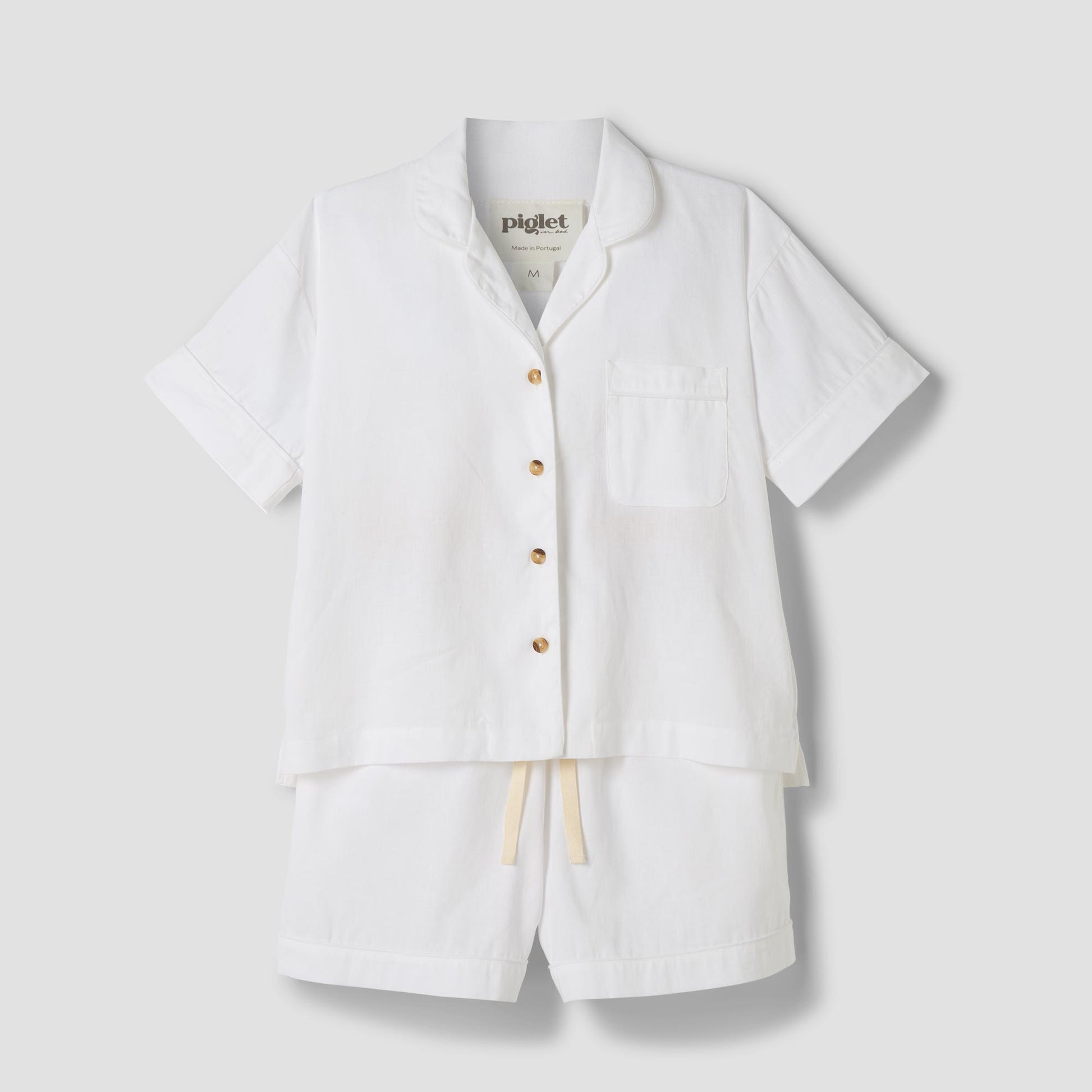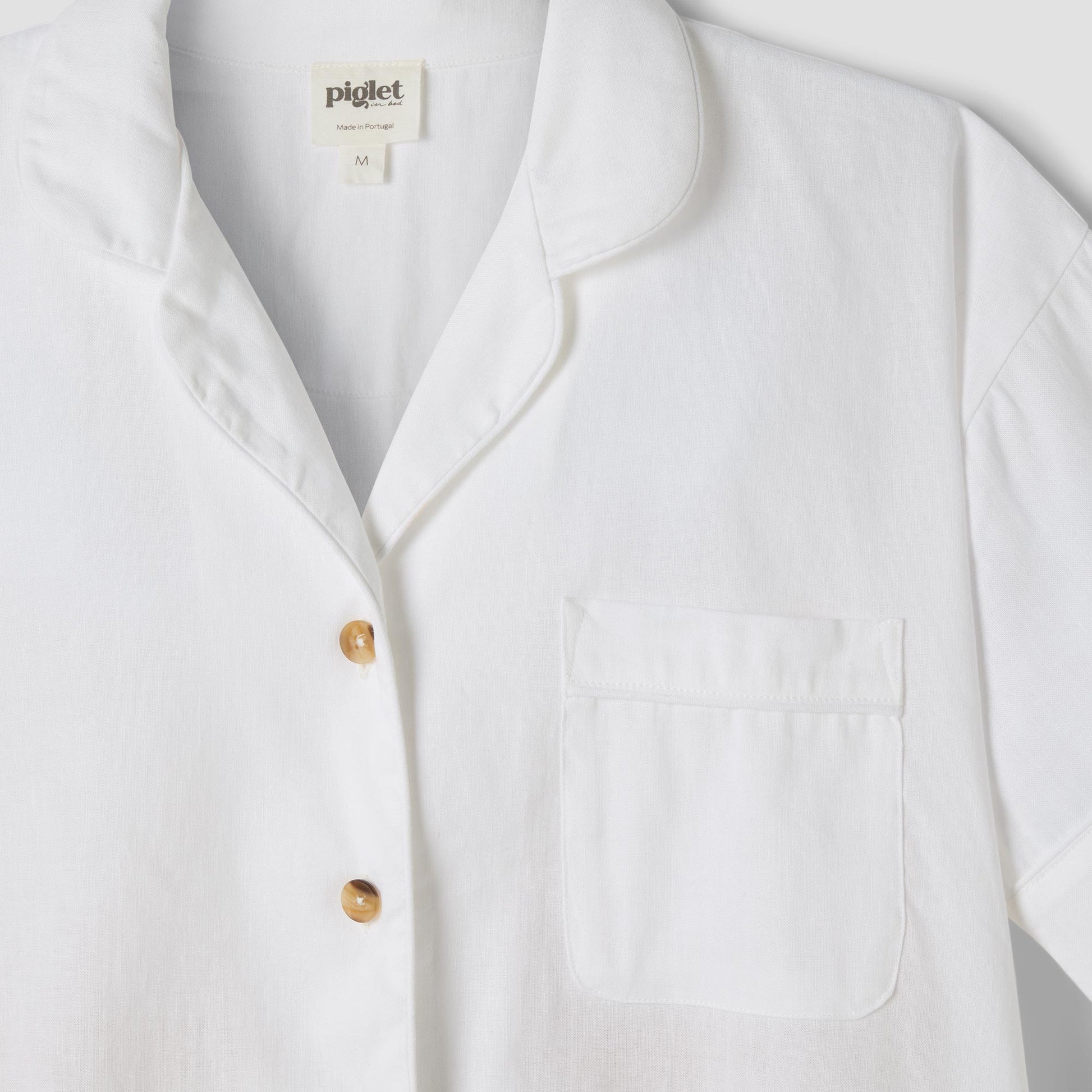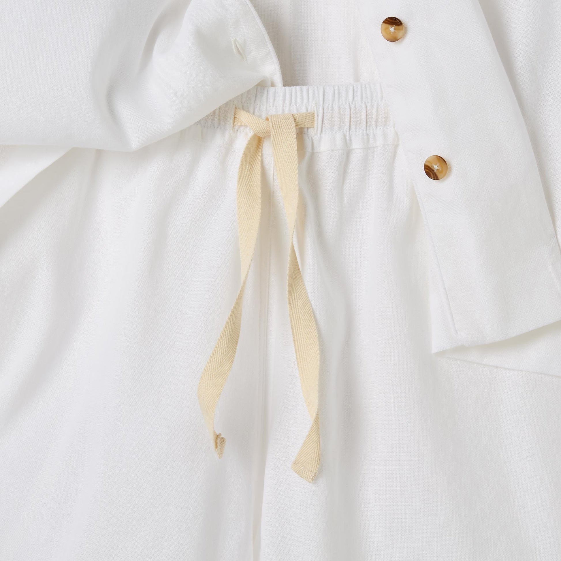 Made for easy, breathable wear, our White linen blend pyjama short set will have you waking up feeling refreshed and ready to seize the day. Combining the laid-back look of linen with the gentle softness of cotton in our classic white hue, these pyjamas are destined to become your new nighttime favourite.